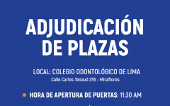 El Consejo Directivo del Residentado Odontológico (CODIRO) informa a la comunidad odontológica nacional y a la opinión pública que el proceso de ADJUDICACIÓN DE PLAZAS se realizará en el Colegio Odontológico de […]