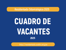 El Consejo Directivo del Residentado Odontológico (CODIRO) anuncia la publicación oficial del Cronograma del Proceso de Admisión 2025 al Residentado Odontológico. Cronograma oficial  Cuadro oficial de vacantes Fechas Clave del Proceso: Convocatoria: […]